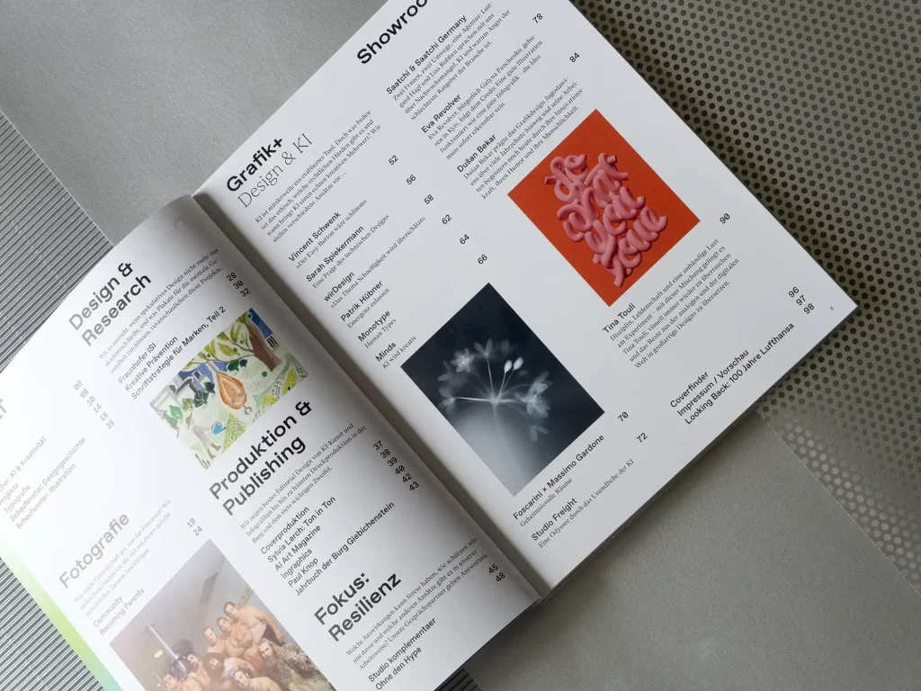 Neben dem Schwerpunktthema bietet diese Ausgabe viel Wissens- und Sehenswertes aus der Welt des Designs. Wir blicken beispielsweise auf die Geschichte hinter der Geschichte von Puh dem Bär, beleuchten ein Forschungsprojekt zu Speculative Futures oder widmen uns der Schriftstrategie für Marken. In unserer Foto-Rubrik stellen wir Arbeiten vor, die sich mit zutiefst menschlichen Themen befassen: Gemeinschaft und Eltern sein. Natürlich gibt es auch viel sehenswertes Editorial Design zu entdecken, sei es zu KI-Kunst, Infografiken oder dem Zweifeln als Methode. In unserem Fokus setzen wir unseren Schwerpunkt zu Resilienz im Design fort und zeigen verschiedene Ansätze, wie Kreative erfolgreich mit Krisen und Hürden umgehen.