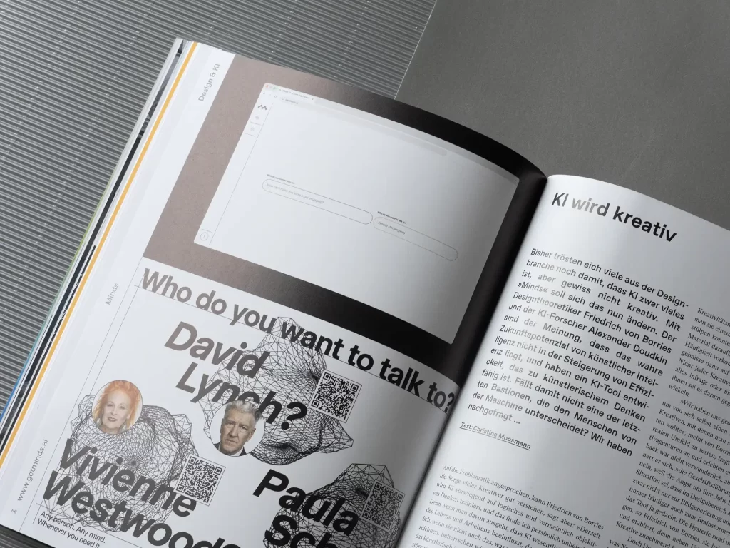 Längst durchdringt KI viele unserer Arbeits- und Lebensbereiche. Wir wollten wissen, wo und wie Kreative sie aktuell einsetzen. Wo KI im Design wirkliche Verbesserungen bringt und wo ihr Nutzen überschätzt wird. Auf zwanzig Seiten stellen wir im Grafikmagazin 02.26 Ansätze und Projekte vor und zeigen, wo die Potenziale von KI im Design liegen.